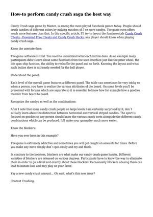 Candy crush is a very addictive game and a great way to pass the time, whether you're on your pc or on mobile. To pass this level, you must collect 1 cherry in 15 moves or fewer. Aug 2, 2018 | by match 3 games.